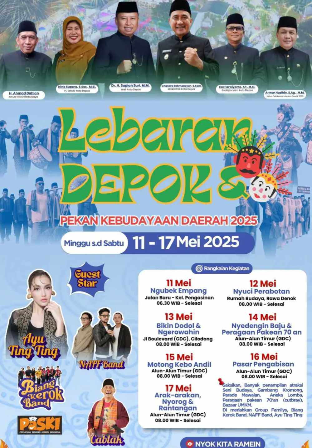 “Untuk seluruh warga Depok, jangan sampai ketinggalan! Kita ramaikan malam minggu ini dengan gegap gempita di Alun-alun Timur. Ini bukan sekadar hiburan, tapi perayaan besar milik kita bersama,” tambah Anwar dengan penuh antusias.