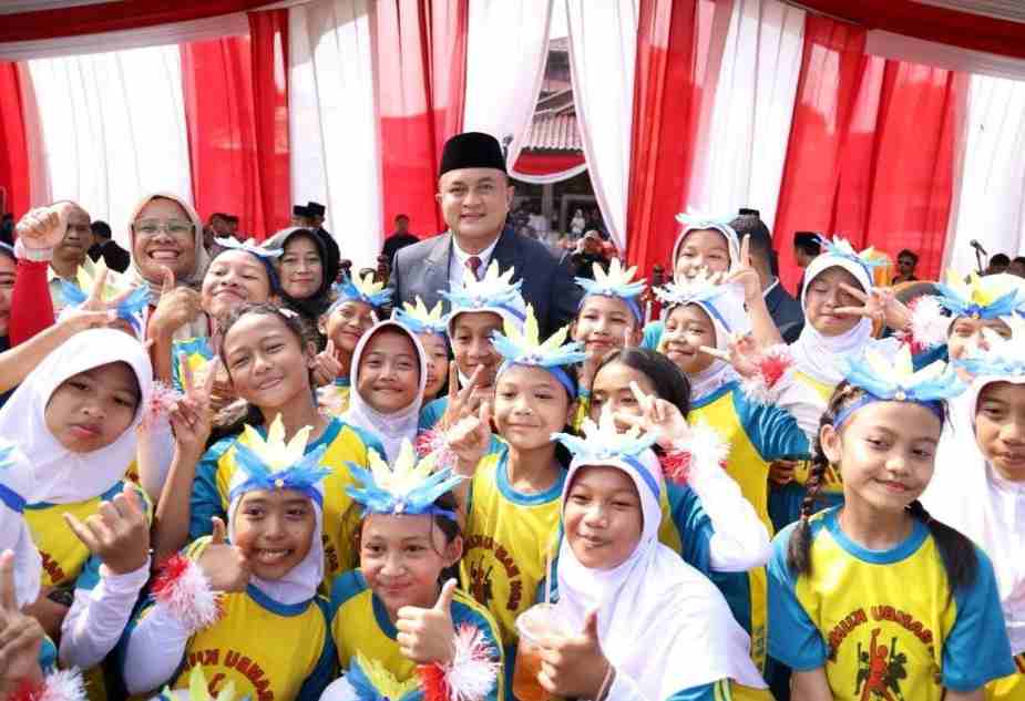 Bupati Kabupaten Bogor Rudi Susmanto, saat foto bersama anak sekolah