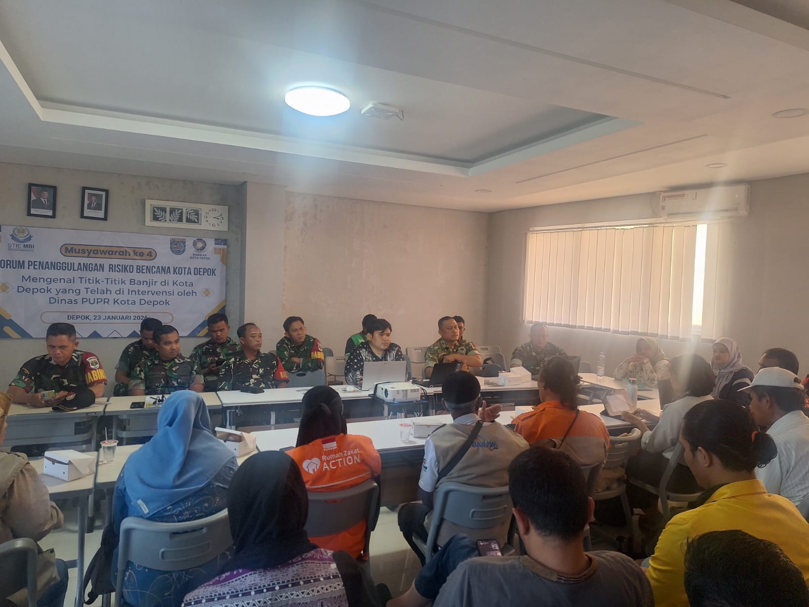 Rangkaian kegiatan diawali dengan pembukaan dan sambutan, dilanjutkan pembahasan utama, kemudian ditutup dengan doa bersama serta sesi foto sebagai simbol komitmen bersama dalam memperkuat kesiapsiagaan bencana di Kota Depok.