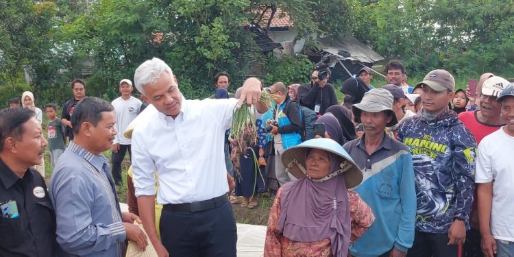 Indograf.com – Calon Presiden nomor urut 03, Ganjar Pranowo, menemui ratusan petani bawang merah di desa Kertabesuki, Kecamatan Wanaaari, Kabupaten Brebes, Jawa Tengah, Rabu 10 Januari 2024.