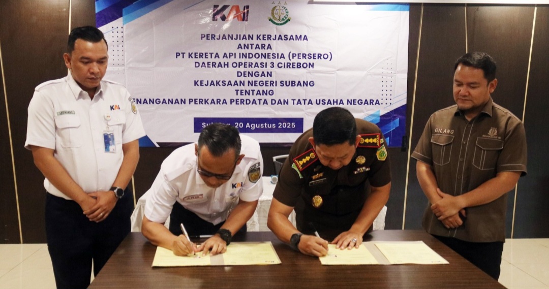 Penandatanganan dilakukan langsung oleh Vice President Daop 3 Cirebon, Mohamad Arie Fathurrochman, bersama Kepala Kejaksaan Negeri Subang, Dr. Bambang Winarno, S.H., M.H.