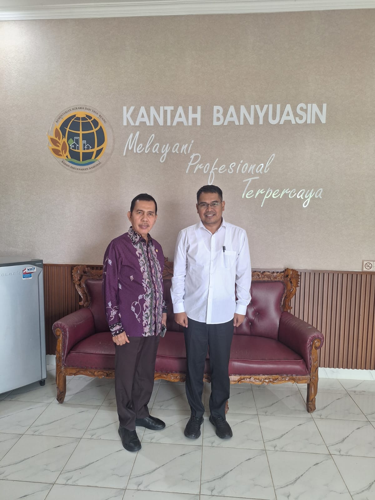 Kedatangan rombongan disambut hangat oleh Kepala Seksi Penetapan Hak dan Pendaftaran, Novi Agustrianto, S.ST., yang mewakili Kepala Kantor Pertanahan Banyuasin Dhona Fiermansyah Lubis, S.ST., M.M., QRMP.