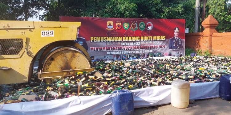 Indograf.com – Polresta Cirebon bersama Forkopimda Kabupaten Cirebon, memusnahkan ribuan minuman keras pabrikan berbagai merek, Kamis 21 Desember 2023.