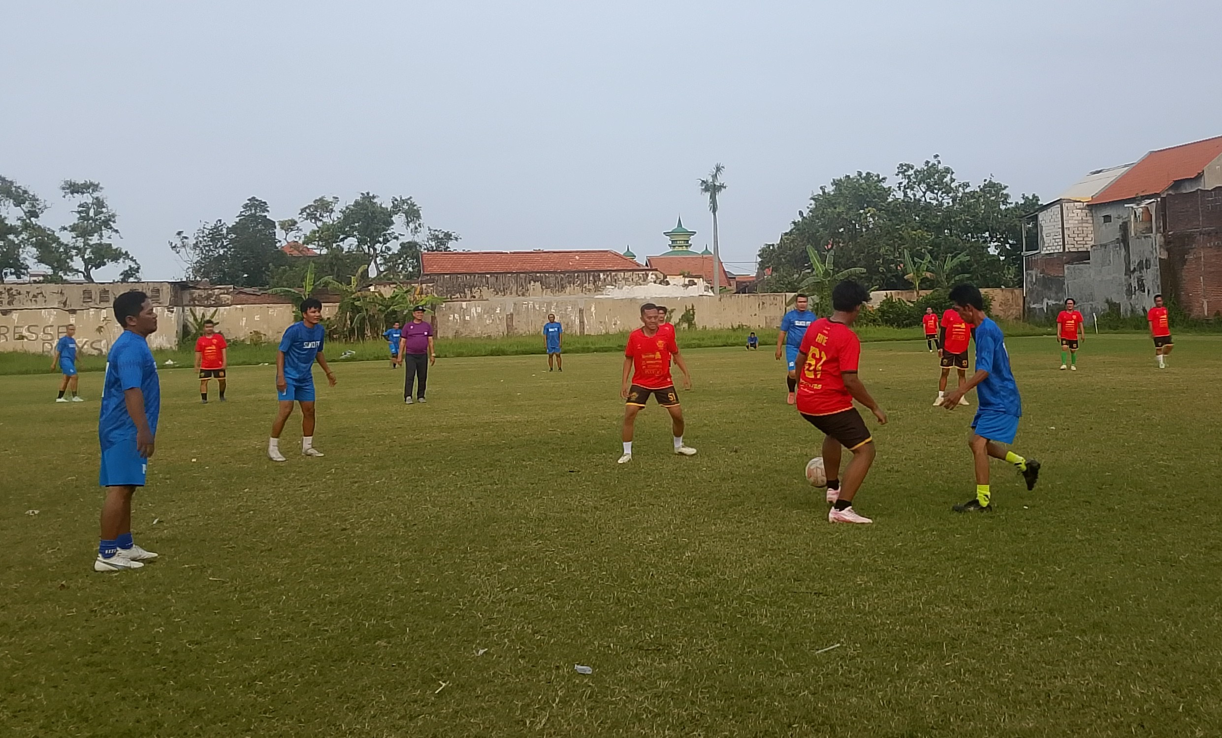INDOGRAF – Pertandingan persahabatan antara komunitas sepak bola Suko FC melawan Kopites Sidoarjo berlangsung seru di Lapangan Desa Suko, Sidoarjo, Minggu (19/4/2026). Tuan rumah Suko FC tampil dominan sejak awal laga dan berhasil menutup babak pertama dengan keunggulan 2-0.