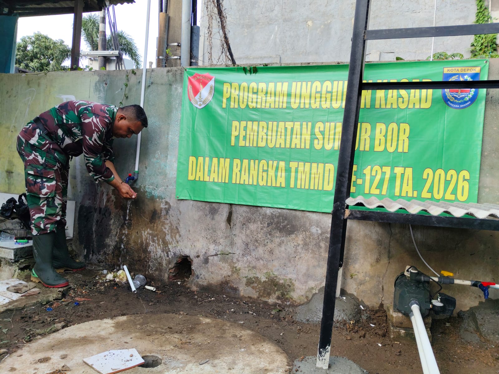 INDOGRAF-Di tengah aktivitas warga Kelurahan Sukamaju, Kecamatan Cilodong, suara mesin bor sesekali memecah keheningan. Di sanalah harapan tentang air bersih sedang digali dari dalam tanah. Melalui Program TNI Manunggal Membangun Desa (TMMD) Ke-127 Tahun Anggaran 2026, prajurit TNI bersama masyarakat bekerja bahu-membahu menghadirkan sumber kehidupan baru bagi warga Kota Depok.