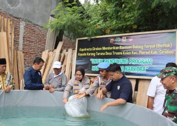 Indograf.com - Polresta Cirebon membagikan bibit cabai, bibit ikan nila, dan balong terpal atau bioflok di Desa Trusmi, Kecamatan Plered, ...