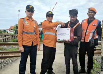 Indograf.com - PT Kereta Api Daop 3 Cirebon bagikan 30 paket sembako kepada petugas penjaga perlintasan swadaya yang berada di ...