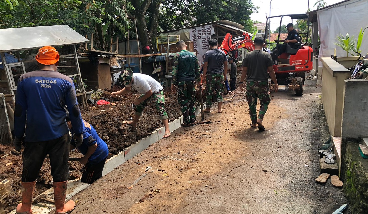 Pelaksanaan TMMD Reguler ke-124 Tahun 2025, Kodim 0508/Depok memasuki Hari ke-14, Senin (19/05/2025) terus menyelesaikan pembangunan Fisik di kelurahan Harjamukti, Kecamatan Cimanggis, Kota Depok.