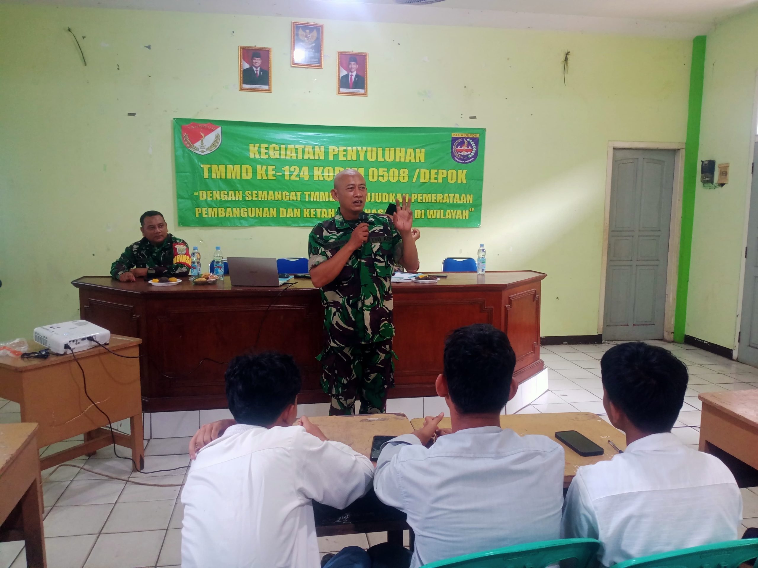 Indograf.com-Dalam rangka kegiatan TNI Manunggal Membangun Desa (TMMD) ke-124, Kodim 0508/Depok melalui Koramil 06/Cimanggis menggelar penyuluhan non-fisik yang bertempat di SMAI Darussalam, Kelurahan Tapos, Kecamatan Tapos, Depok. Kegiatan yang dimulai pukul 08.00 WIB ini berlangsung aman, tertib, dan penuh antusiasme dari para peserta.